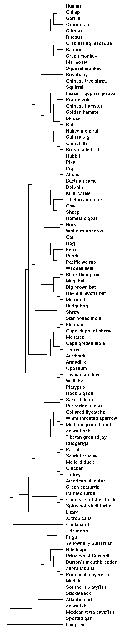 consensus in the vertebrate phylogeny community. Thanks to Giacomo Bernardi for
